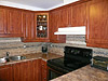 The traditional style of the wood cabinets, along with the natural look and feel of the granite counter-tops, porcelain tiles and backsplash, creates a warm and inviting atmosphere which will impress and add class to your home. The crown moldings bridging the ceiling and cabinets are a fine detail which elegantly flares out to produce a finished top edge. The light fixtures, patio door, and window brighten up the room and add contrast to the dark cabinets and lighter surroundings. This easy to use, stylish kitchen is just one example of the many custom built kitchens available if you choose RS Renovations.