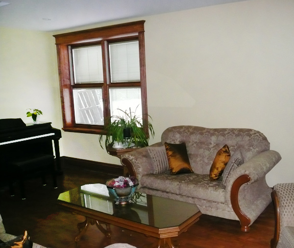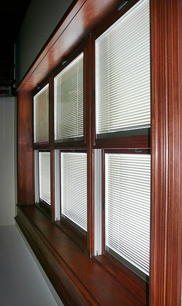 The window has a wood interior and aluminum exterior. It’s a double-hung window which has two sliding sashes for efficient ventilation. The built-in blinds are sealed within the panes of glass; therefore, they are protected from dirt, dust, and physical contact. Once the window is installed, the sliding sashes are stained and lacquered. Wood finished windows are luxurious and meant to impress. The addition of wood moldings around the window gives it character and adds a touch of class. This is just one example of the types of windows available if you choose RS Renovations for your window renovations.